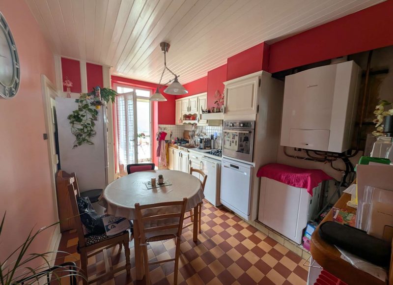 Quartier de l’hôpital, au premier étage avec entrée indépendante, appartement ancien de type quatre pièces dont trois chambres d’environ 88m² habitable sur balcon-véranda d’environ 9m² comprenant : hall d’entrée, ancienne salle d’eau/Wc, séjour, cuisine, trois chambres dont une avec salle d’eau/Wc. Grenier. Place de parking. Eau individuelle, chauffage central gaz de ville individuel. Montant des charges prévisionnelles annuelles de copropriété sur l’exercice 2025 d’environ 1200 Euros. Copropriété de neuf lots à usage d’habitation. Classe énergie D (indice 140) & Gaz à Effet de Serre D (indice 30). Montant estimé des dépenses annuelles d’énergie pour un usage standard entre 1170 Euros et 1620 Euros. Prix moyens des énergies indexés sur les années 2021, 2022 et 2023 (abonnements compris). Réalisation dossier technique immobilier 24/01/2025. Prix : 199 000 Euros Frais Agence Inclus. Réf.3067