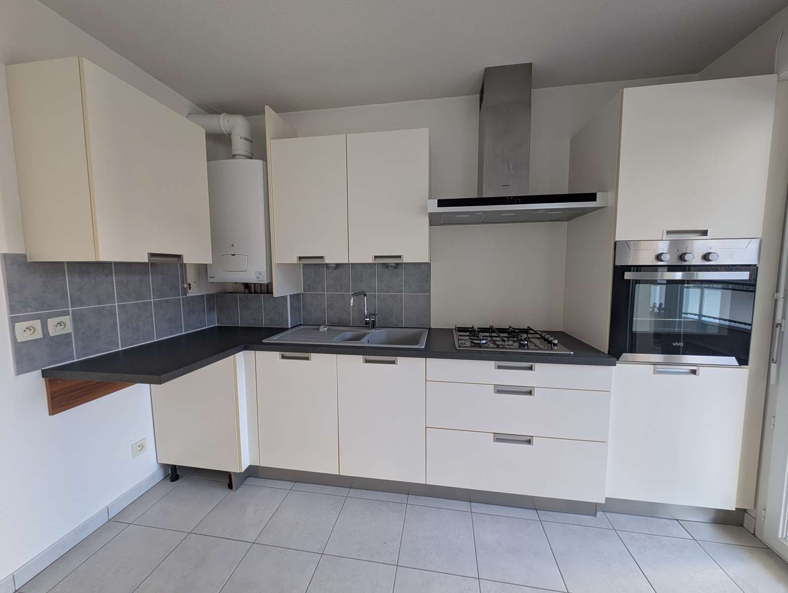 appartement de type trois pièces dont deux chambres avec cave, garage et place de parking.