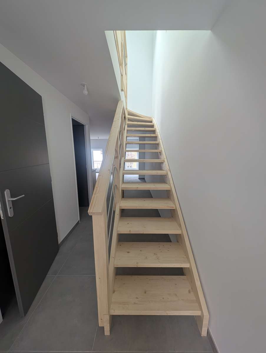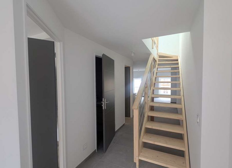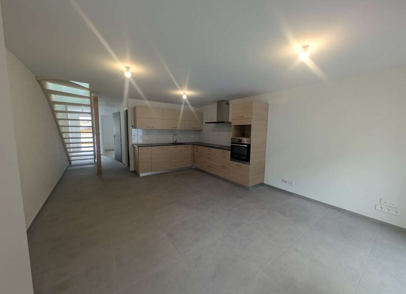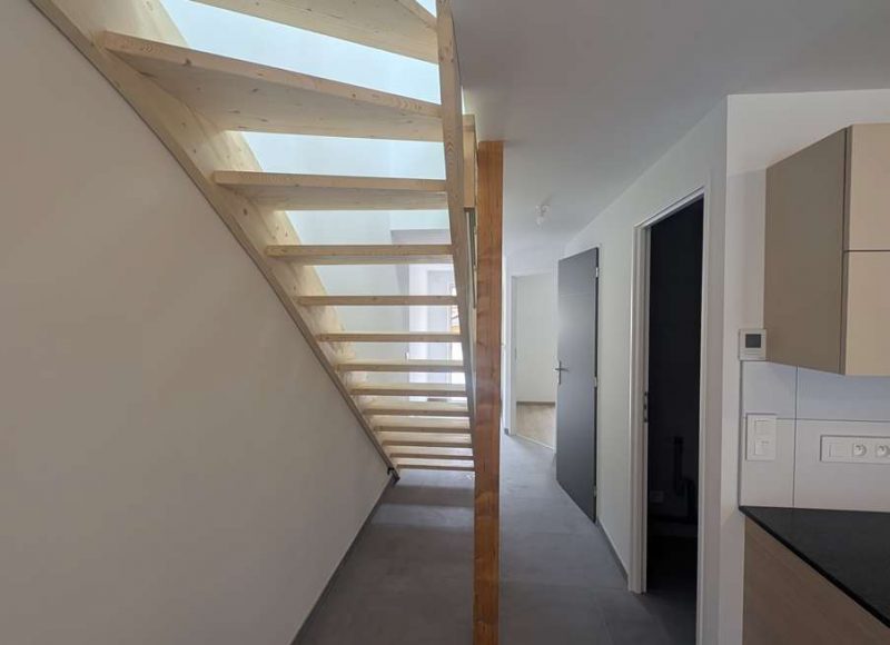 Au deuxième étage, appartement duplex neuf de type quatre pièces dont trois chambres, mezzanine d’environ 78m² habitable. Terrasse 23m² et box rangement 10m². Loyer 940 Euros + Charges 15 Euros soit 955 Euros Charges Comprises. Dépôt de garantie 940 Euros. Frais Agence 600 Euros dont 180 Euros Etat Des Lieux. Classe énergie C (indice 133) & Gaz à Effet de Serre A (indice 5). Montant estimé des dépenses annuelles d’énergie pour un usage standard entre 1000 Euros et 1390 Euros. Prix moyens des énergies indexés sur les années 2021-2022-2023 (abonnements compris). Chauffage électrique. Surfaces mentionnées approximatives pour information. Réalisation dossier technique immobilier 16/02/2026. Réf.348-3